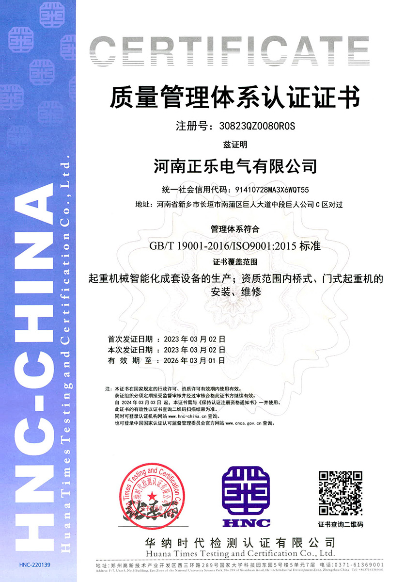 河南正樂電氣有限公司,成立于2016年,注冊資本為:1000萬元, 公司地處中國起重機生產基地河南省長垣市起重工業園區,是一家專注于起重機電氣控制系統、系統開發、技術服務、 電器集成、銷售 等領域的綜合性企業。自成立以來,我們始終致力于為客戶提供高品質、效率高的起重機電氣控制系統解決方案,以推動工業生產和物流運輸的快速發展。